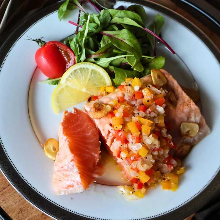 火を通してもふっくらと仕上がるので、表面を焼き付けてサーモンステーキにするのもおすすめです。