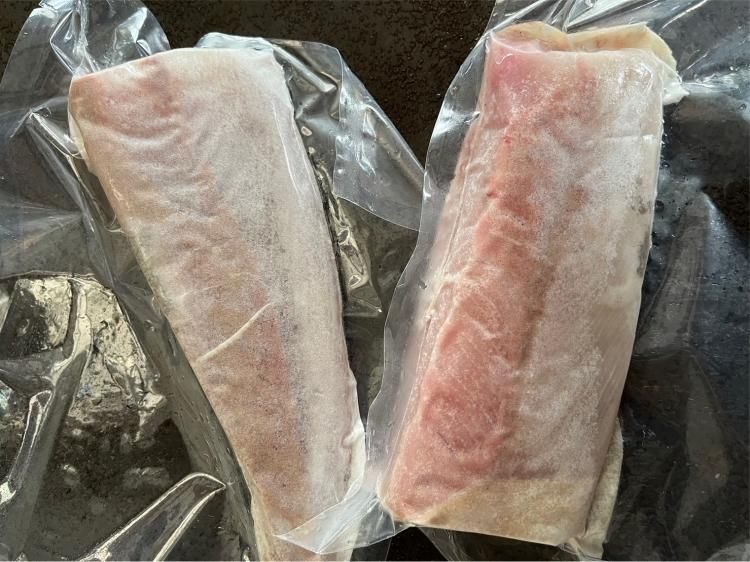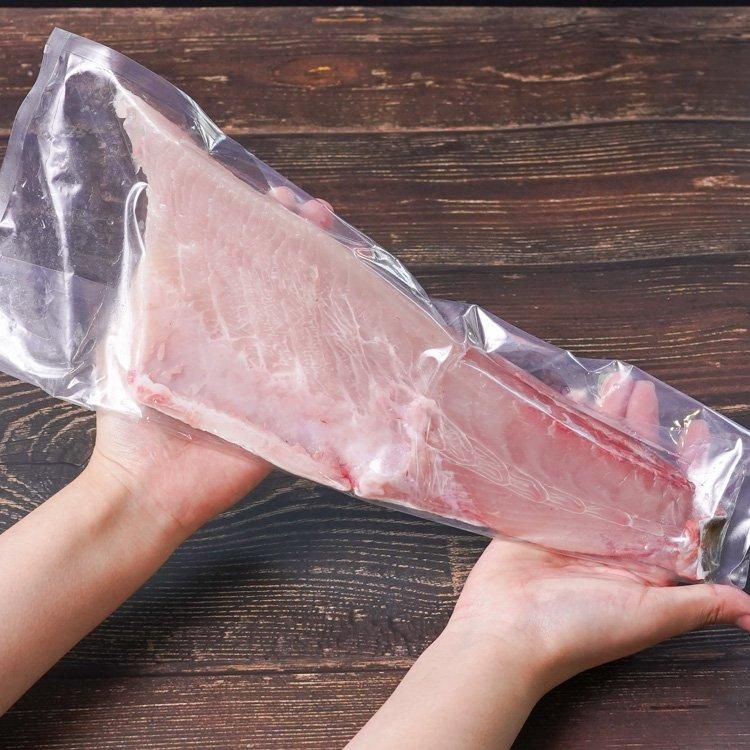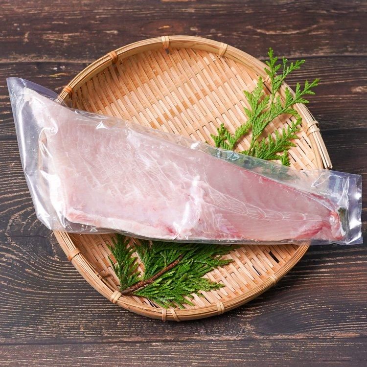 津曲商店では調理しやすいように、フィーレ(半身)にさばき、内臓処理と皮もはいだ状態で、1/4匹分を真空パックにしてお届けします。