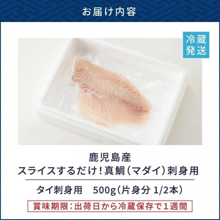 【冷蔵便/送料無料】 スライスするだけ!真鯛(マダイ)刺身用 片身分 500g 5〜6人前